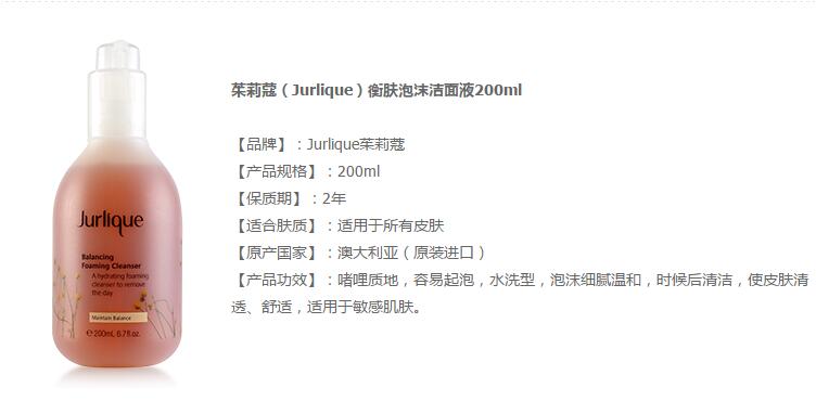 【最划算】Jurlique 茱莉蔻 衡肤泡沫洁面液 200ml-Balancing Foaming Cleanse 保质期至04/2018